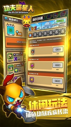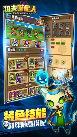 功夫喵星人游戏是一款以像素猫为题材的冒险动作游戏,玩家能够作为队长不断在游戏世界中探索冒险,解救众多流量的猫咪,搭配不同的技能战斗,将讨厌的敌人赶出银河系,现在来游戏还有功夫喵星人预约礼包,喜欢的朋友就来下载试试吧!