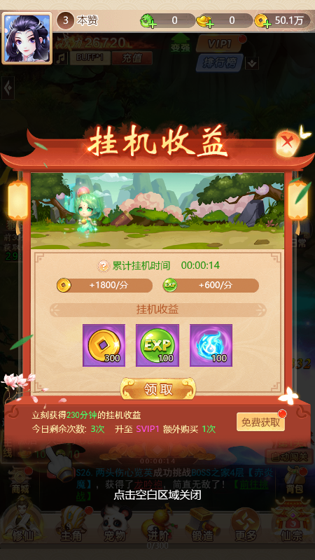 2.玩家只要累积到足够的等级就可以不断解锁新的玩法模式完成修仙之旅