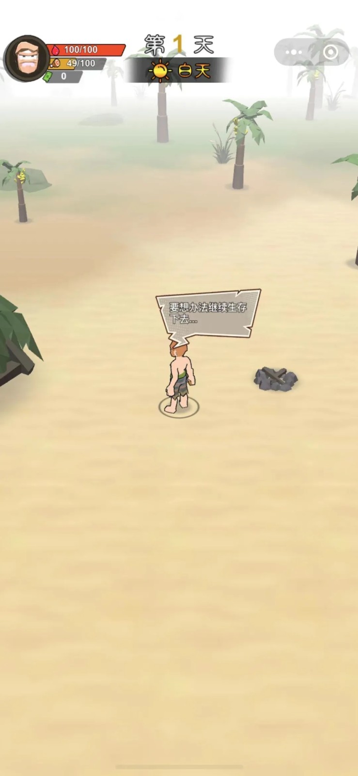 4、在这里我们要做的就是不断地去获取小岛资源保证自己能够存活下来
