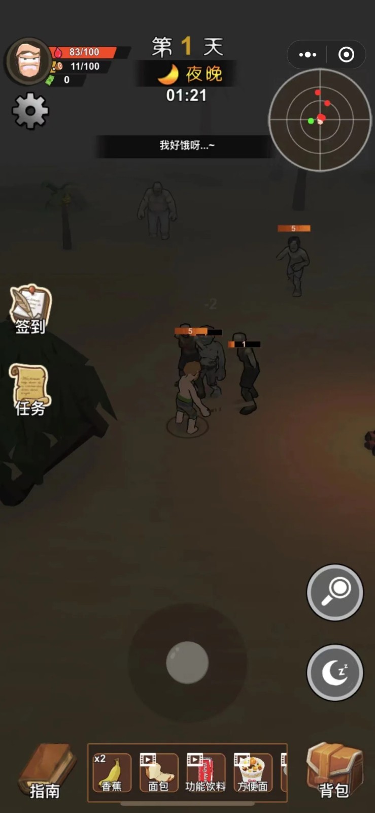 3.当夜晚来临时,森林中的僵尸也会增多,玩家需要打败所有的僵尸