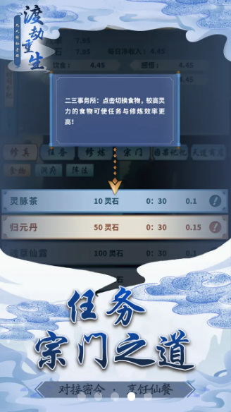 渡劫重生凡人修仙手册是一款刺激好玩的文字修仙游戏。渡劫重生凡人修仙手册游戏里面的剧情非常的精彩,玩法非常的新颖,超多不同的角色,玩家可以自由进行选择,获得更多功法,去解锁更多不同的武器,让自己从小虾米变成大神,体验游戏带来的更多精彩玩法。