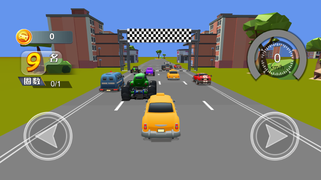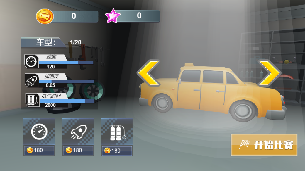 1.画面设计非常的卡通,比较豪华的跑车造型也非常的吸引玩家的注意力