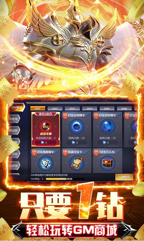 5、GM商城1钻石,不花钱也成神,刀刀秒杀BOSS不再是梦!