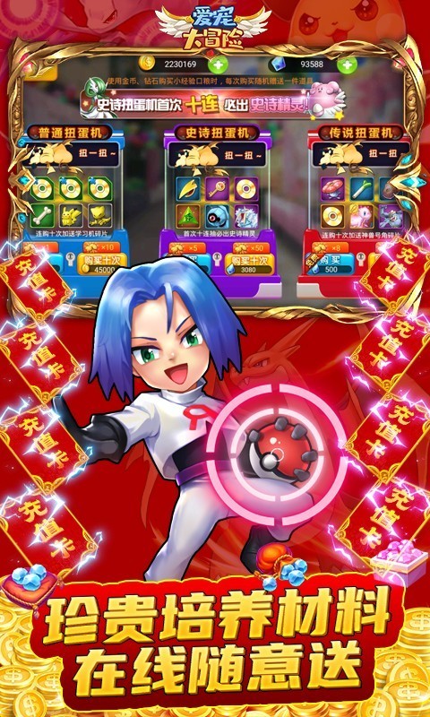爱宠大冒险新春抽红包是一款非常受欢迎的卡牌对战类手机游戏。玩家上线即有大量的宠物和材料可以获得,乐趣十足。超多有趣的内容可以体验,感兴趣的快来下载爱宠大冒险正版吧!