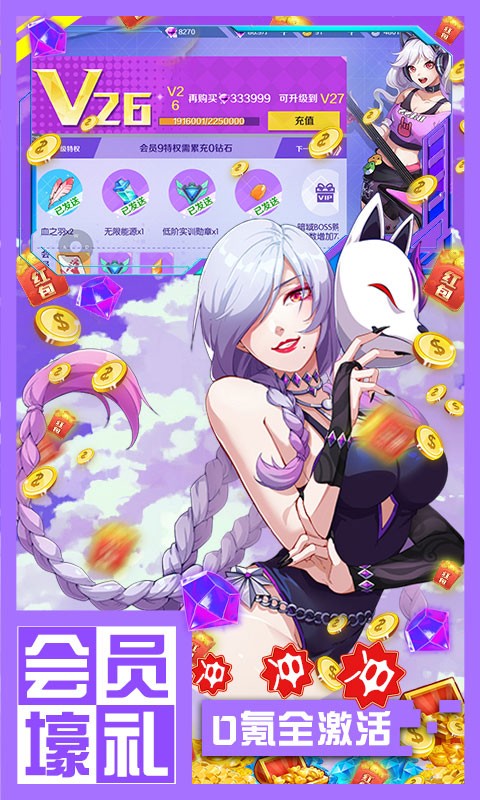 1.上线直送VIP9,更有千元充值卡等你来拿,每日在线和登录都可领取代金券,直接白嫖升满V,0氪也能当大佬。