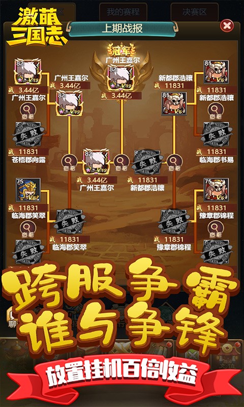 3、完美还原三国时期大大小小的战役,感受热血激烈的战斗场景,兄弟齐心一起征战沙场,取得战斗的胜利,一统天下,获得最强称号。