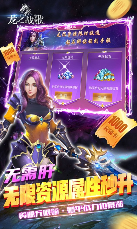 4. 无限资源拿到手软:激活无限资源魔晶绑钻、钻石无限领。