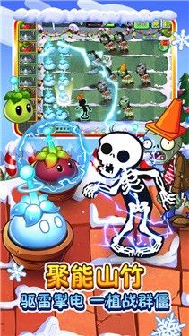 植物大战僵尸2迎双旦,是一款好玩的经典塔防游戏,为了迎接2022圣诞和元旦节日带来的全新内容,在这里加入了全新的植物和圣诞限定场景,你可以去探索更多新的场景,你可以更好的函授圣诞节日单来的氛围,植物大战僵尸2迎双旦游戏中你可以轻松去进行塔防策略的玩法,这里的每一个过程都会让你有放置的操作,快来更好的去抵挡僵尸的步伐。