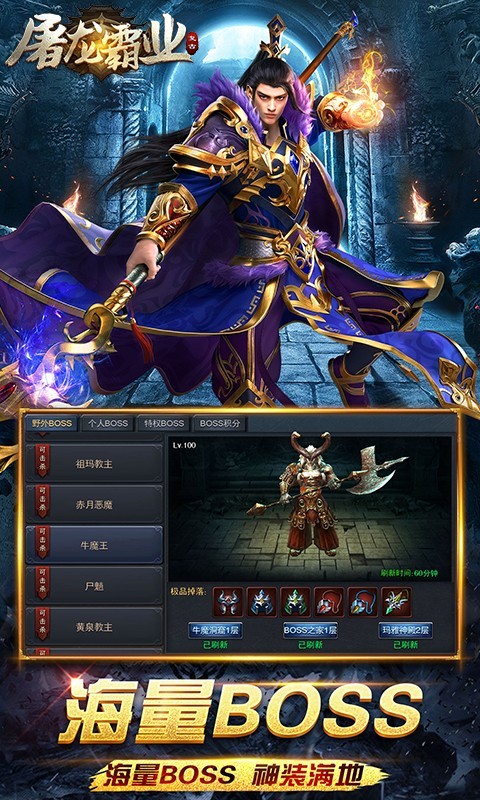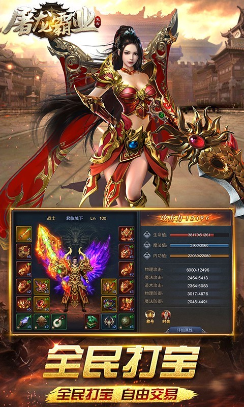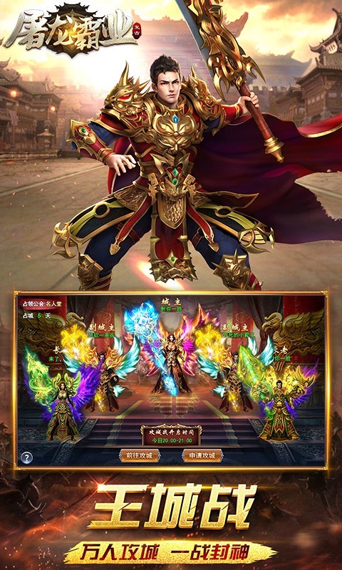 屠龙霸业是一款经典高爆打金的变态手游。玩家上线免费送VIP5,充值比例1:500。在线免费领取真充红包,海量代金券免费领取;线下充值超值道具返利,丰富的线下礼包,不定期发送。海量的福利等你来领取,不断游玩屠龙霸业来体验最好玩的CQ游戏。