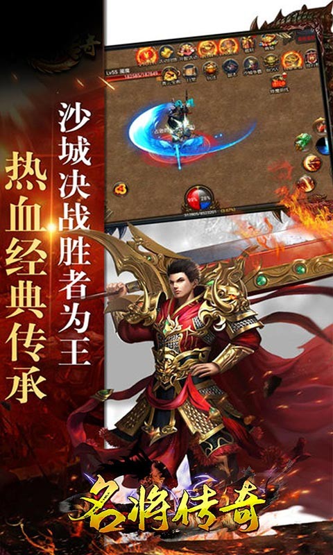 名将传奇是一款非常好玩的传奇角色扮演类手机游戏。玩家建立角色就送海量资源、元宝*66666、铜钱*5888888、绑元*888888、“我是传奇”的绝版称号;上线更有高级翅膀、时装、炫光、武器、V8让你直享尊贵VIP特权。通过首充双倍充值任意金额即可领取绝版称号和英雄神器;装备可无限回收元宝,不充钱也能打倒土豪。