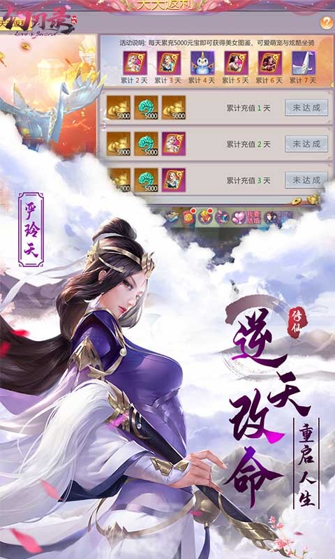 单日累充1000元:仙宠升级丹*200,高级翅膀精华*100,寻宝秘钥*10,外形-流光天使*1