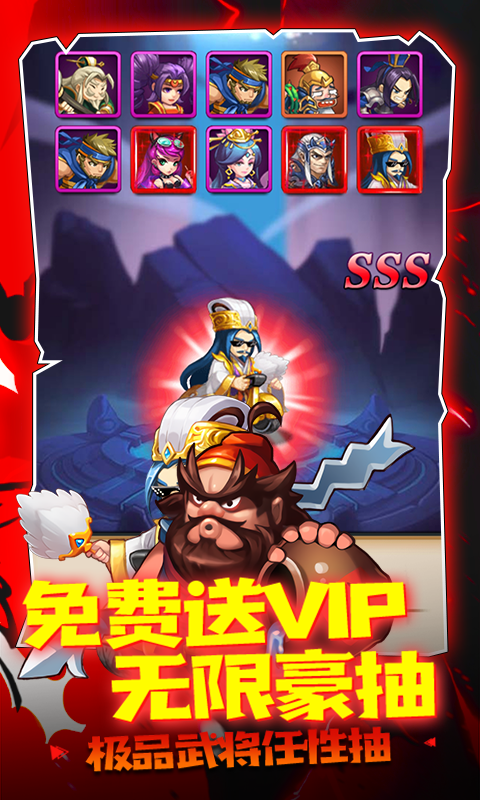爆笑三国策略放置类手游,q版画风,卡牌策略玩法为主,丰富的操作,休闲有趣的台词及风趣的画风,回合制对战,解放双手,释放大脑,武将克制,布置阵法,合体绝技,动感特效,轻轻一点,扫平对面满血小兵