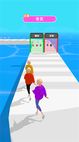 闺蜜谁最美游戏是个卡通背景的休闲跑酷游戏,一路上可以根据温度的变化来搭配衣服,所有的房间都有更换的服饰,闺蜜谁最美游戏中左右移动角色、三个美少女们一起奔跑,看看谁搭配的衣服更加的闪耀,在终点的时候还能站在一起拍照。