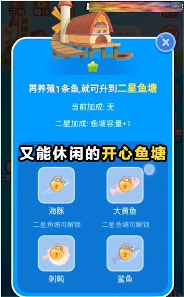 3.你需要更好的捕鱼技巧来捕捉更高级的鱼,丰富的游戏方法和自由选择的经验。