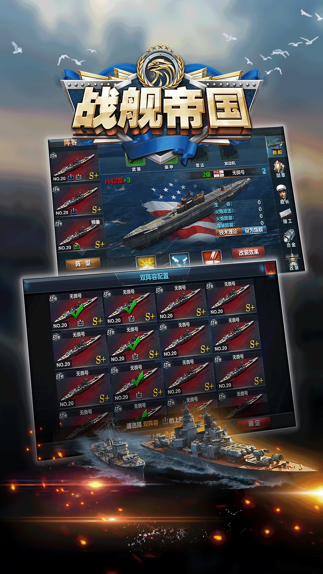 每个阵型拥有不同的属性加成,玩家可以选择开启其中的任一阵型,开启后则为所有舰船增加对应的阵型属性。