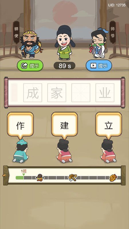 3.在整个游戏的过程中,玩家将会与快乐苦恼共同伴随,各种成语填词乐趣无限