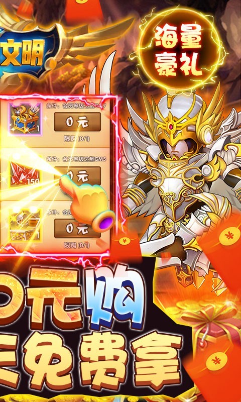 灵光文明永久武尊令是一款以二次元神话题材为背景的ARPG放置手游。玩家上线即送VIP5,神兵、称号、宝箱等超值道具使用VIP特权免费领。七日登录送超强橙色神兵、异兽、红色连招宝箱等超值福利。各种仙家奇珍异宝数不胜数,你可以在如画的仙侠世界里修仙。