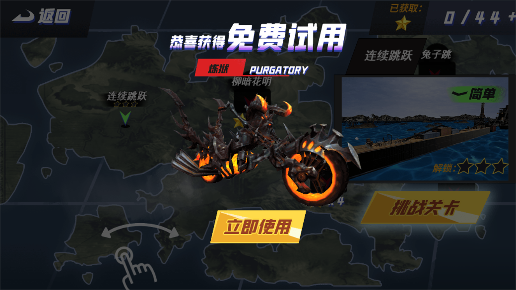 2.玩家通过闯关来解锁更多成就,成就越高就能获得更高级别的摩托车