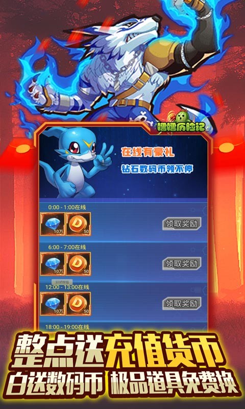 噜噜历险记是一款非常好玩的回合制卡牌游戏。玩家上线就赠送V20、召唤币*288000、金币*1000W、钻石*1888888、海量充值卡;累计登录就送十万元充值卡。整点在线送数码币,体验白拿极品数码兽不是梦。你将在游戏中通过控制不同的卡牌英雄来完成不同的挑战,感受热血竞技的闯关过程。不断游玩噜噜历险记来体验有趣的卡牌游戏。