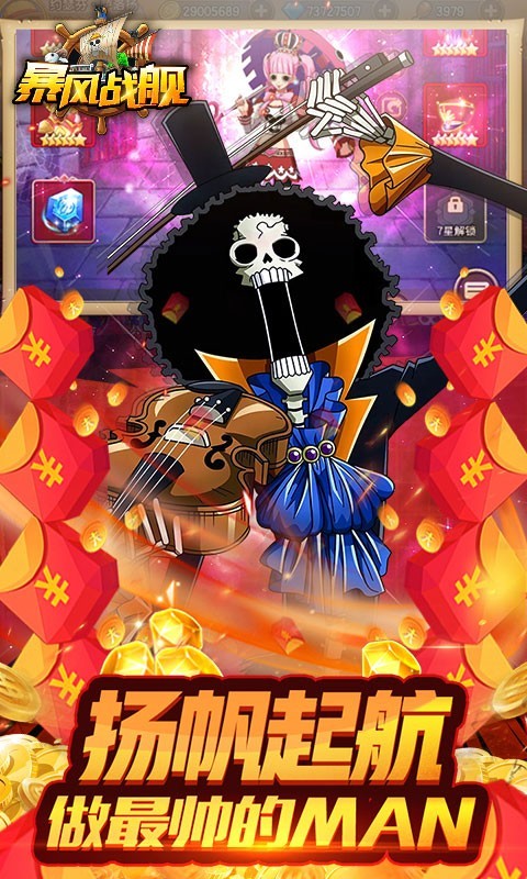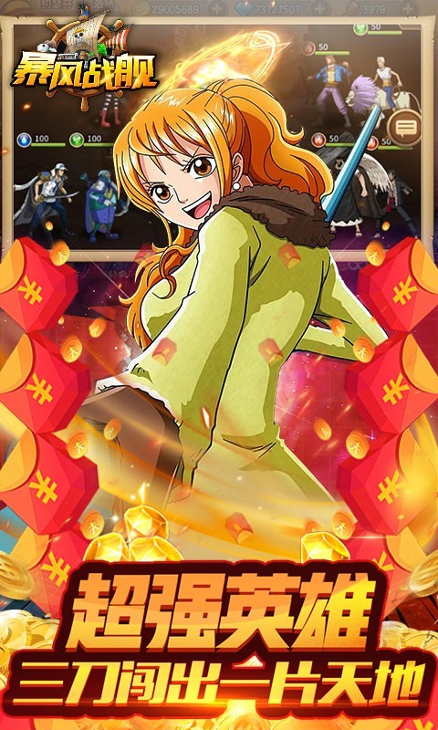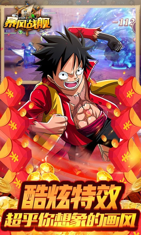 1、采用二次元动漫风格的游戏主题,还原经典剧情,更有知名角色悉数登场,再现草帽海盗团。
