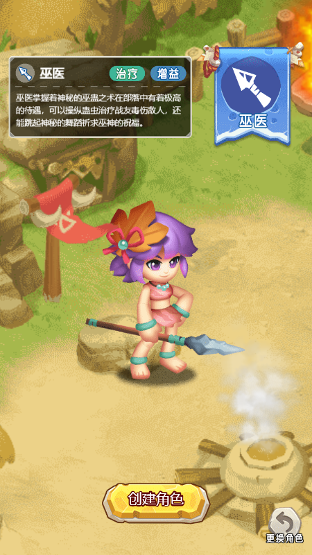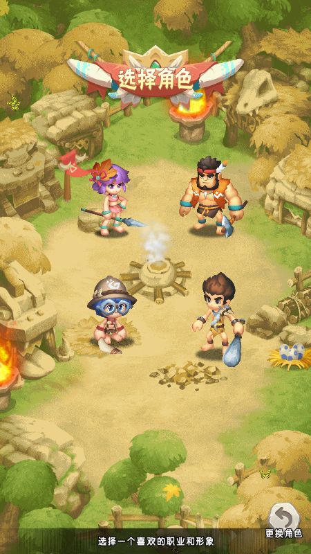 1.游戏里可以选择自己想要的原始部落角色,不断展示你的战斗技巧来打败对手进行挑战