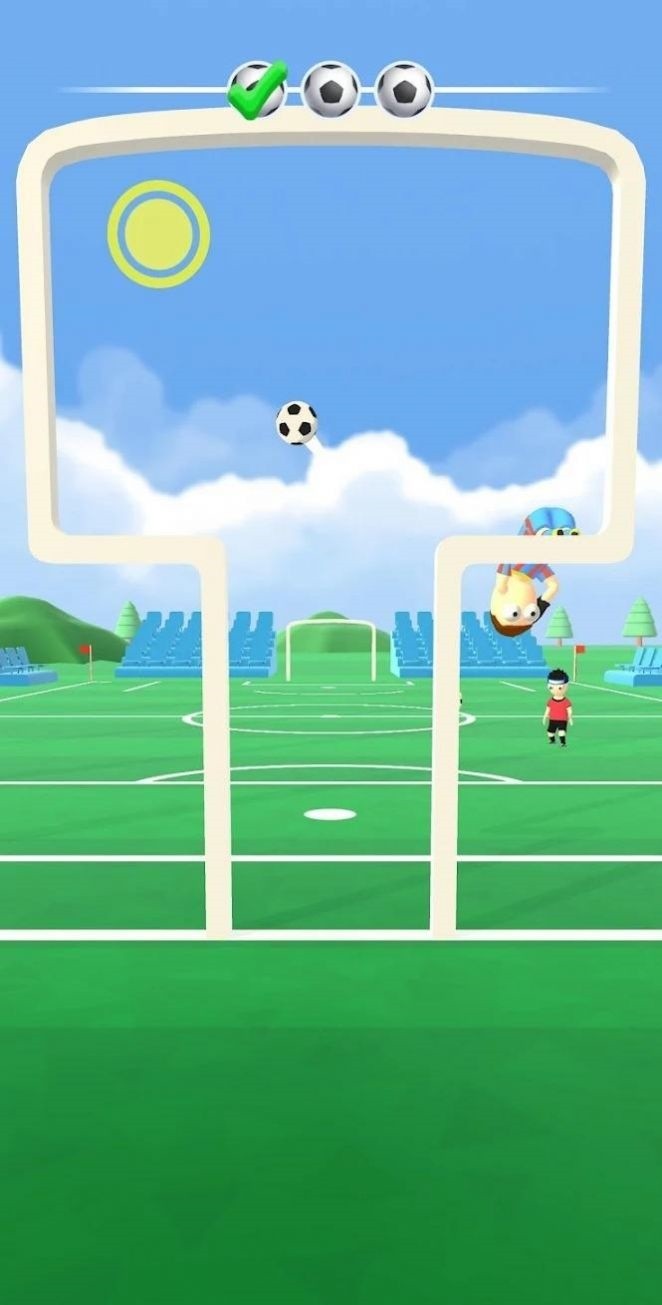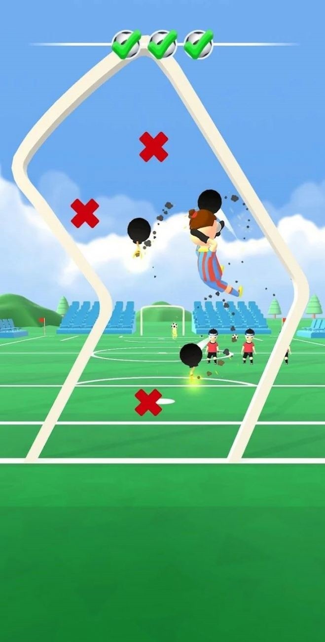 2.足球在游戏中会以不同的方式和角度进入球门,玩家需要用身体的部位将足球阻拦到球门外面。