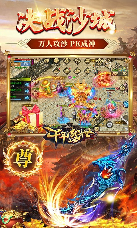 3、万人在线同屏攻沙,决战沙城,兄弟集结,并肩作战,无限boss等你来战。