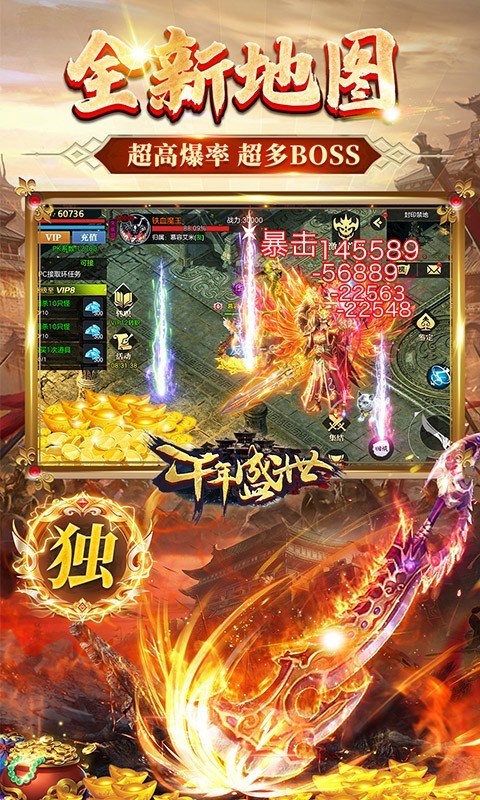 2、全新上线的地图,在这里所有装备全靠爆,爆率全面提升,小怪爆一切,帮助你快速升级。