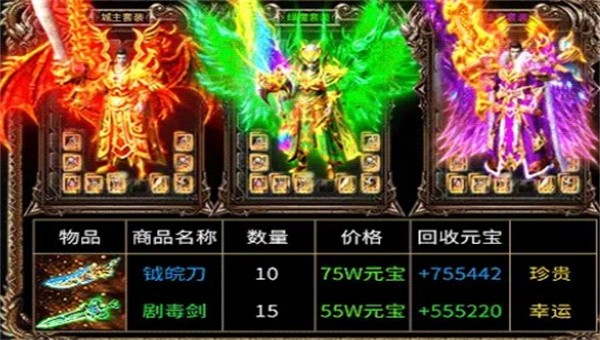 这是一款真实良心的传奇高爆手游,每天都能得到不同的福利,24小时可以免费开放地图,上线可以得到不同的神器,使用大量的特技来对决吧,爆出来的装备比较的稀有。