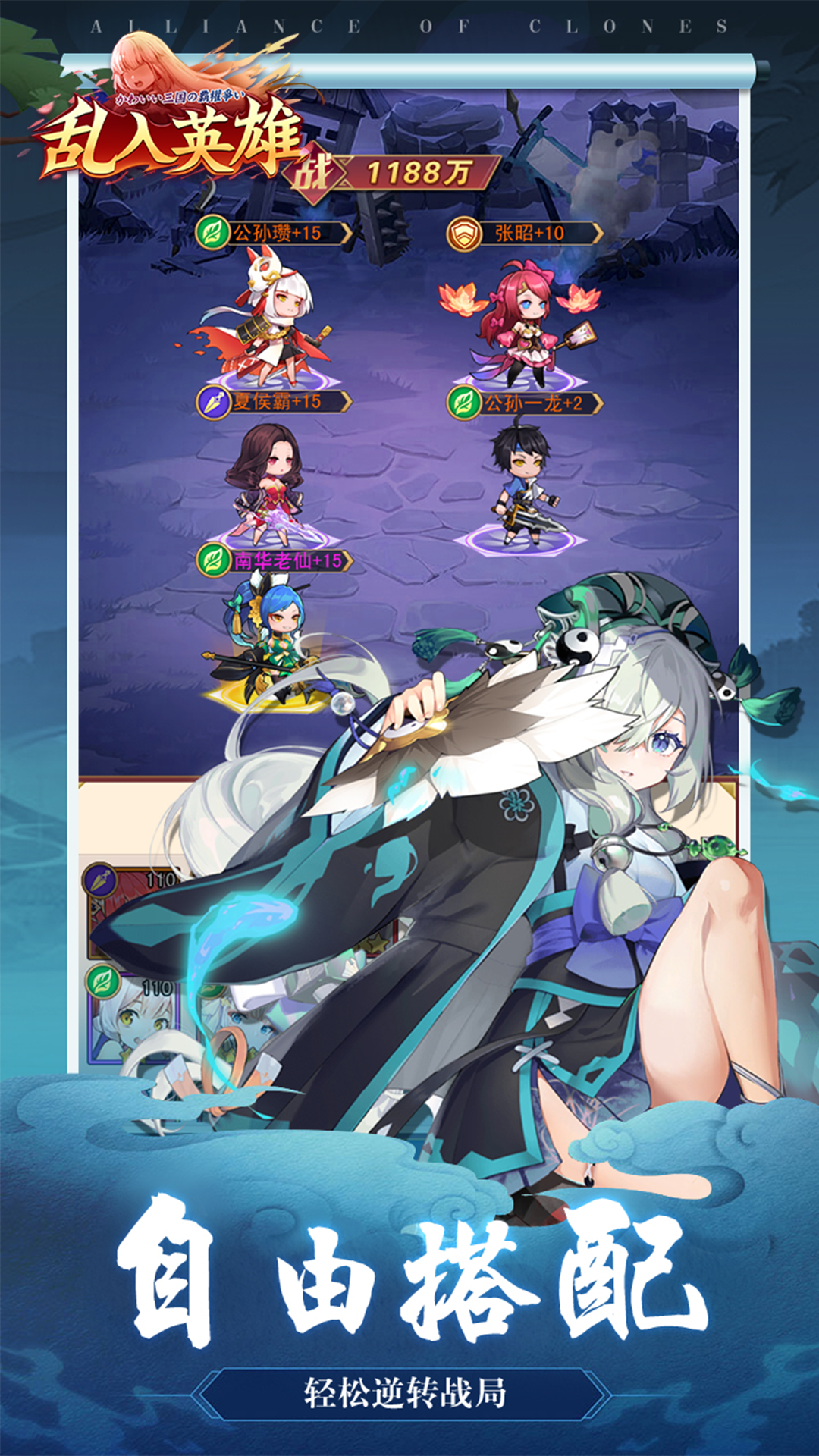 乱入英雄游戏是个Q版三国背景的卡牌放置回合制战斗游戏,玩家将收集好不同的武将角色,快速的展开对决吧,乱入英雄游戏中的武将很多,培养自己喜欢的角色,快速的与激情混乱的战斗,组建自己喜欢的无敌阵容吧,所有的技能都可以搭配,一起勇猛的冲刺。