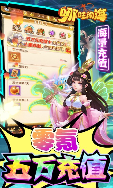 哪吒闹海官方版是一款全新封神题材的回合制游戏。玩家上线就送SVIP特权,首日登陆送神宠哪吒,七日登陆领炫酷装饰和稀有称号。提升等级就送5万元充值卡,可无门槛使用,让你体验当土豪的感觉。每日登陆活跃还送抽卡券,各种稀有道具、充值卡无限抽。不断游玩。