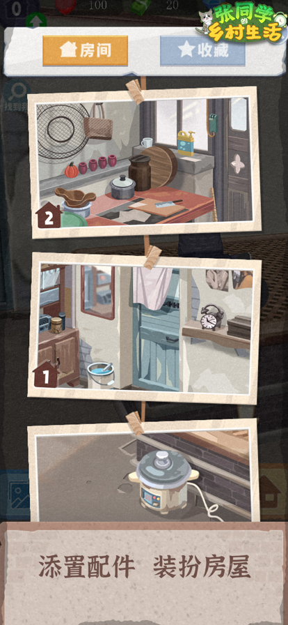 3.在游戏中真实的模拟农场场景中探索收集各种对自己生活有用的道具,搬回自己住的房间。
