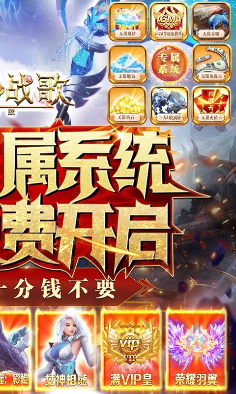龙之战歌官方版是一款全面升级的RPG魔幻手游。新增GM专属系统,无限资源、充值卡、档位充值免费送,更有无限吞噬系统无限增长属性。通过多样的任务养成方式,实现装备自由交易,轻轻松松提升你的等级。