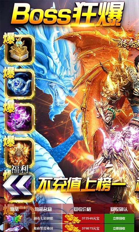1、在这里所有装备全靠爆,一刀999,元宝遍地爆,击杀boss就有机会获得绝版传世套装,让你不肝不氪做大佬。