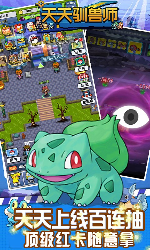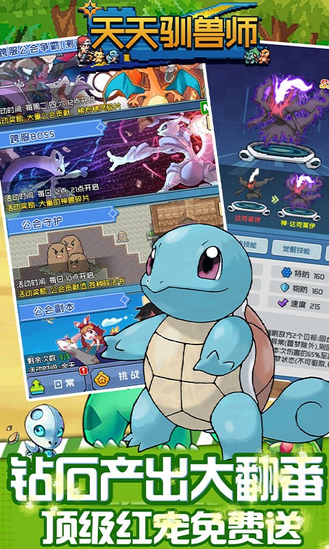 天天驯兽师满v版是一款高人气的卡牌养成类手机游戏。玩家上线即可领取100张扭蛋卡、顶级红宠、神兽碎片。累计签到更有神兽卷、牛逼神兽可以免费获得。海量的钻石和材料等你来拿,升级速度、奖励产出大大提高,让你玩的更加爽快。喜欢的快来下载吧!