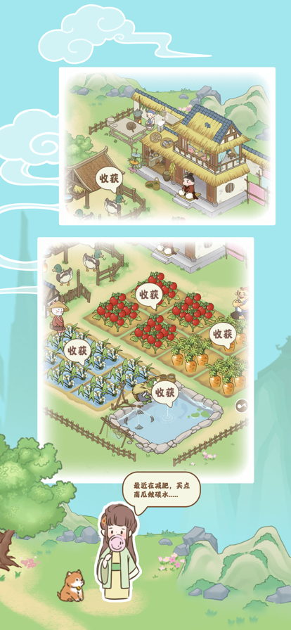 1.一款古风田园手机游戏。这个游戏是由中国古代元素制成的。玩家在游戏中管理田园生活,体验田园生活。
