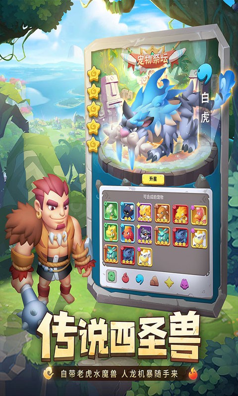 兽兽军团最新版是一款趣味性十足的卡牌养成类手机游戏。玩家开局就送十连抽,更有五星神宠免费领。自带老虎水魔兽,人龙机随手来。你将在游戏中扮演一个原始部落中的普通人来完成不同的任务,带给你重回石器时代,带给你不同的乐趣。感兴趣的快来下载体验吧!