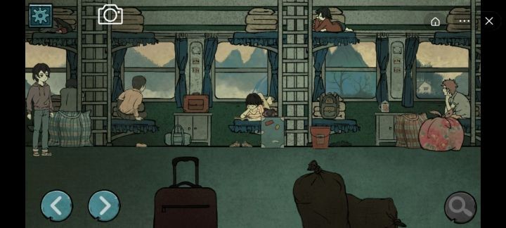 2.上车后会碰到看窗外风景的老师写作业的同学,在第三个位置中找到背包解开耳机线找到车票