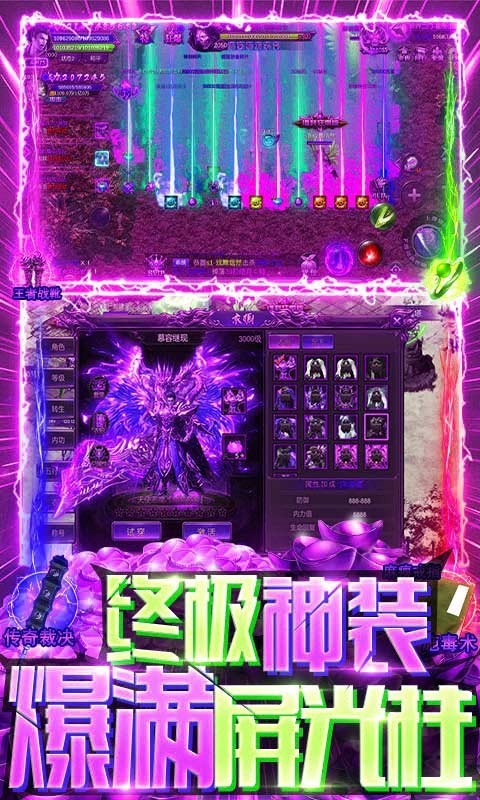 2、数百种传奇装备可以选择收集培养,每个职业都有不同的技能,带给你不同的乐趣。