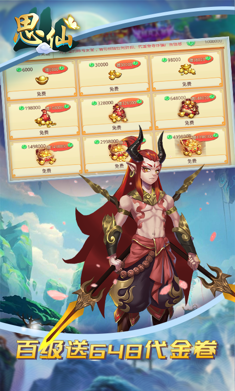 思仙免费充值版是一款非常好玩的角色扮演类手游。玩家登录就送满级VIP15及全部特权券。次日登录送圣兽孙小圣,七日登录送觉醒-万剑归宗。首充送648代金券,次日返100%代金;购买所有礼包,返还100%代金券。所有莲玉充值永久免费,无限购买次数。喜欢的快来下载体验吧!