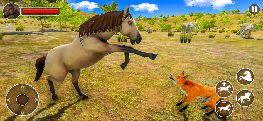 通过猎杀小动物或者完成躲避天敌的任务。让野马获得经验值升级,升级后的野马可以提升生命值和攻击力。在野马模拟器游戏中,玩家不仅可以体验冒险带来的快感,还可以探索沿途的风景。