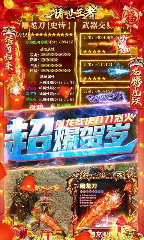 1、在这里所有装备全靠爆,爆率大幅度提升,小怪爆终极装备,BOSS无限爆极品,神装真充全靠打,让你不氪金也能玩到爽。