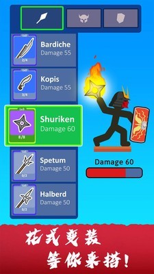 一款好玩的游戏,更多的火柴人战斗又来了,这次玩斯巴达勇士,玩家需要用自己的武器,瞄准前面的敌人并把他们扔出去,感受不同的简笔画,消灭所有敌人,赢得升级,快来玩吧!