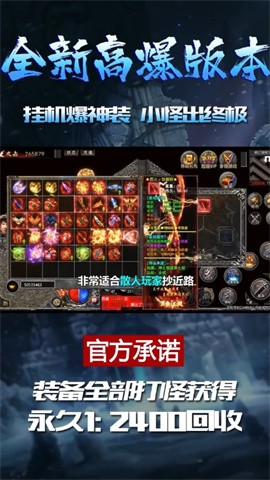 1、装备全部可以打怪得到,永久回收系统上线,1:2400的回收比例;
