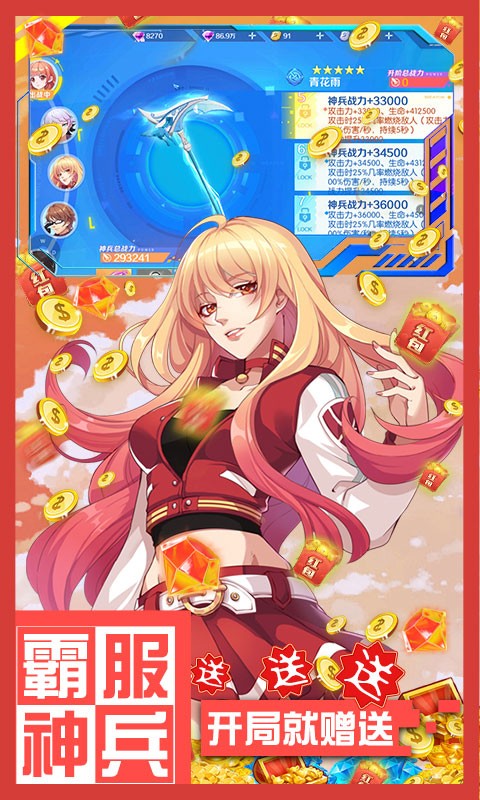 单日累计300RMB:刑天神赐卡*50、中阶坐骑自选箱*10、镜变结晶*6000、神御碎片*3000