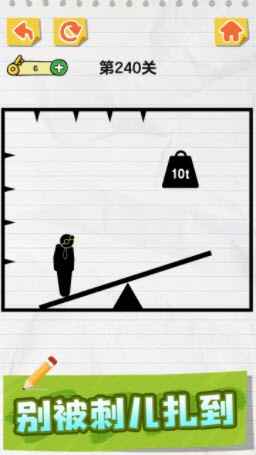 比如第一关在一个小坑中下方有尖刺陷阱,你只需要画一条横线就可以了,就能让玩家顺利通关,第二关两个方块的中间有一个鲨鱼,需要画一条弧线就能顺利的通过,第三关会有两个铁球向你攻击,需要画一个框框保护好自己就可以了,第五关要组织炸弹爆炸,画个半弧不要让炸弹靠近火源就行,第六关有飞剑向你袭击,你需要画个大一点的弧形在身边,第7关不要让铁块掉下来,需要画一个]字型的形状,依次类推达到每个关卡的标准就可以了。