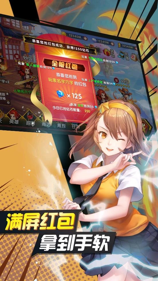 2、玩家可以轻松升级,提高角色的档次,双倍的钻石返利,紫色的天降点击可以赠送;