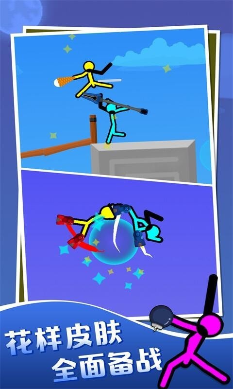 一款相当有趣的简笔画主题动作游戏。游戏中有三种不同的玩法:生存模式、单人模式和双人模式。游戏中玩家需要控制的角色可以用武器快速杀死对面的敌人或对手。非常有趣。喜欢这种游戏风格的玩家。