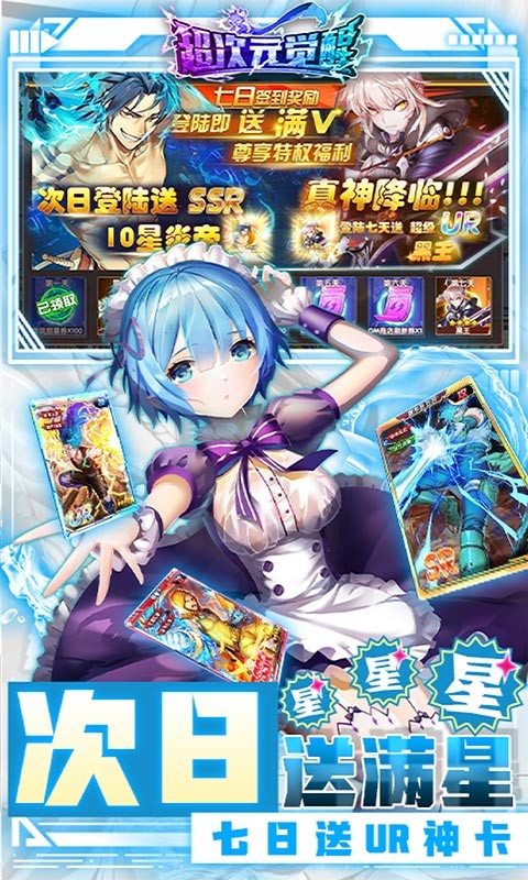 超次元觉醒官方版是一款超爽激斗的卡牌回合制游戏。玩家上线就送满V,登录七天送最强UR英雄、钻石*200000、金币*2000万、一键通关功能。超值GM商城,开局直送GM9特权,天天都有SSR无限抽。首充3倍返,首充超强SSSR英雄、配套专属武器、觉醒材料、魂匣10连抽等你拿;每天可领大量钻石+魂匣招募券,加速培养满星英雄。