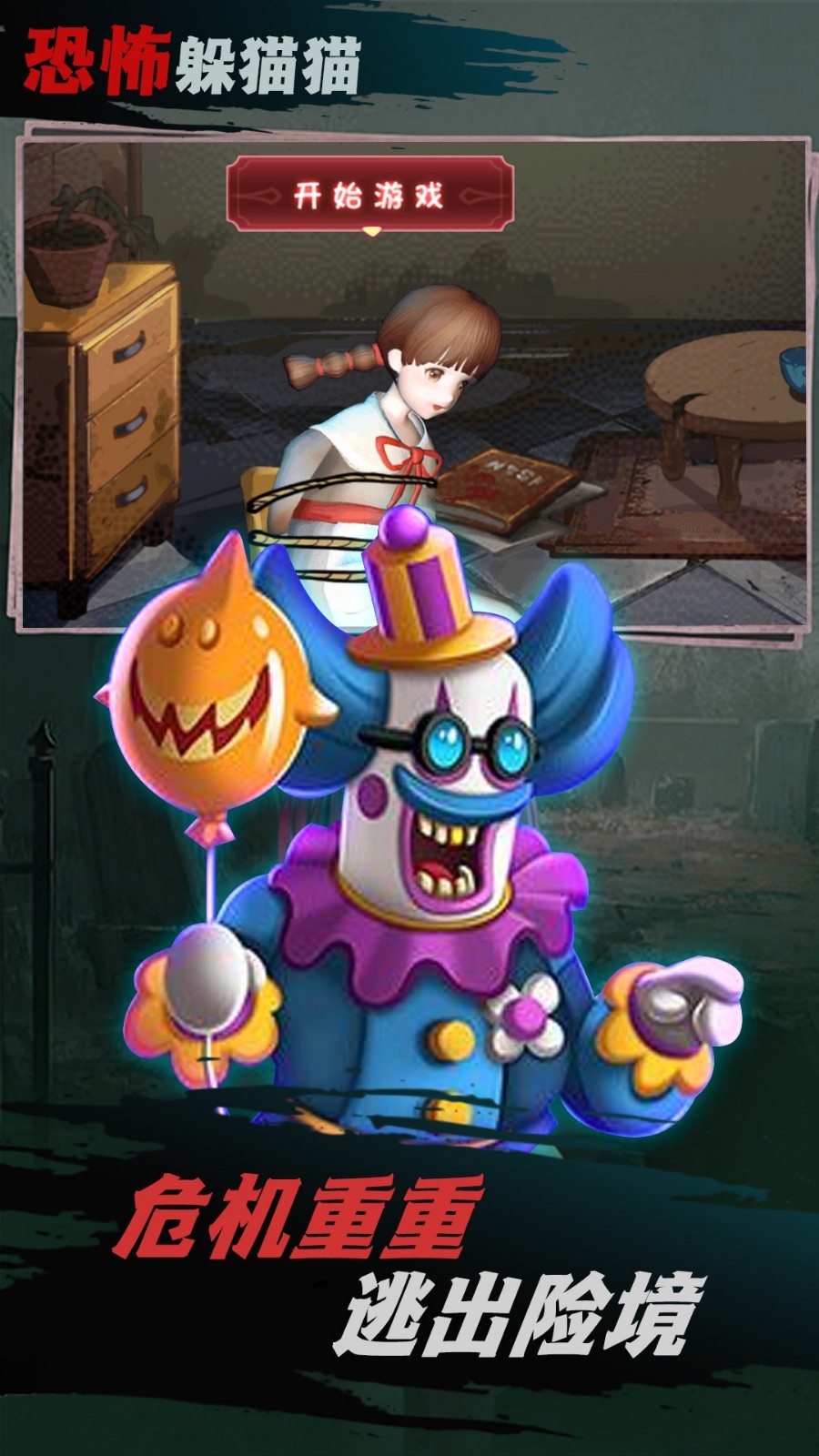 这是一款剧情和人物都很生动的逃生游戏,你最大的对手是个小丑,你不能在房间里看着对方,否则你会很危险,让自己活着是非常重要的,你也应该寻找有用的道具,如果你喜欢,就去轻松探索挑战。
